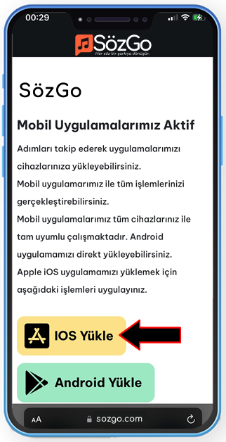 > Apple iOS uygulamamızı yüklemek için aşağıdaki işlemleri uygulayınız.